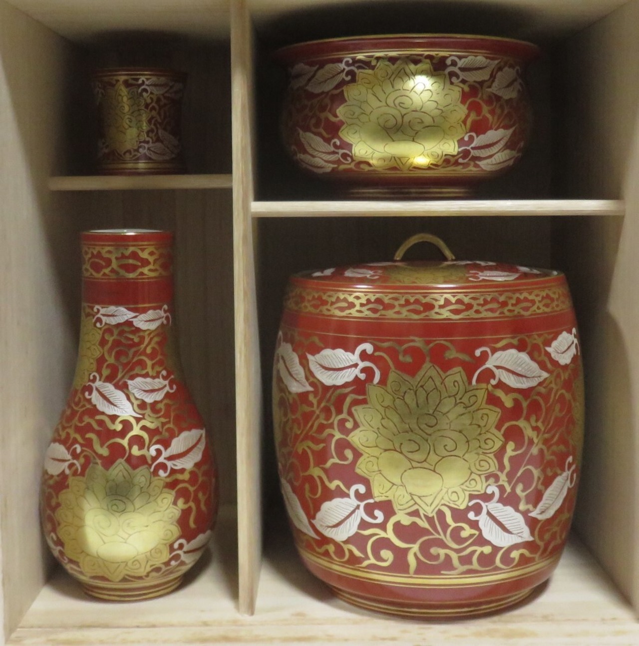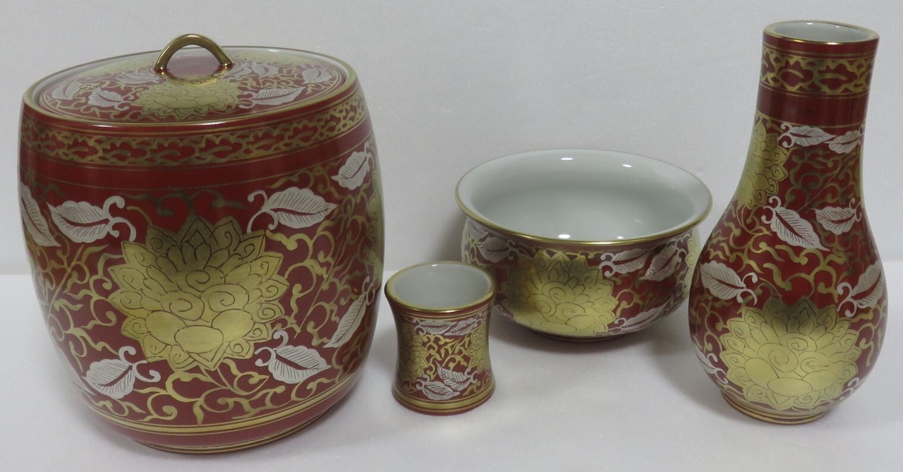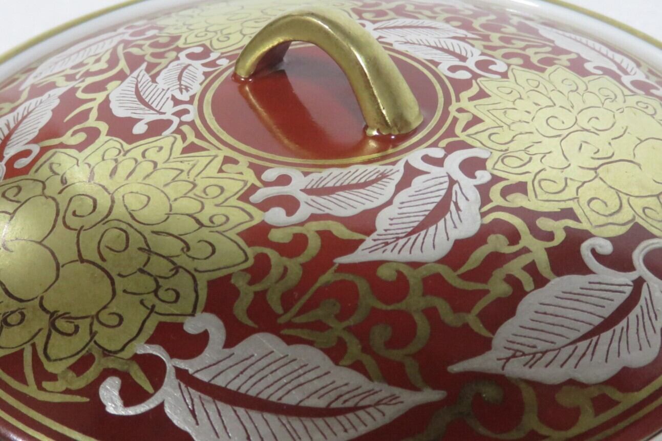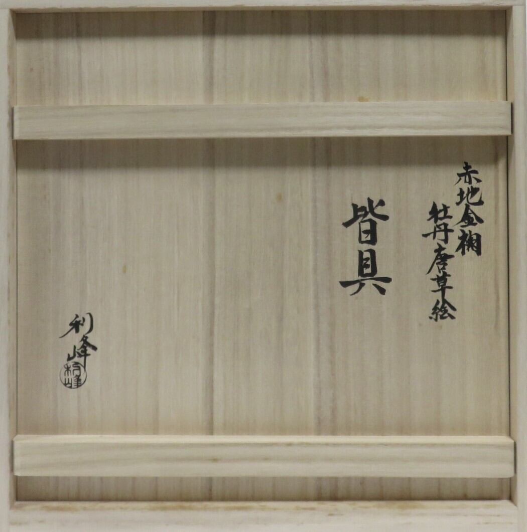 <古物・中古>赤地 金襴 牡丹唐草絵 皆具 利峰