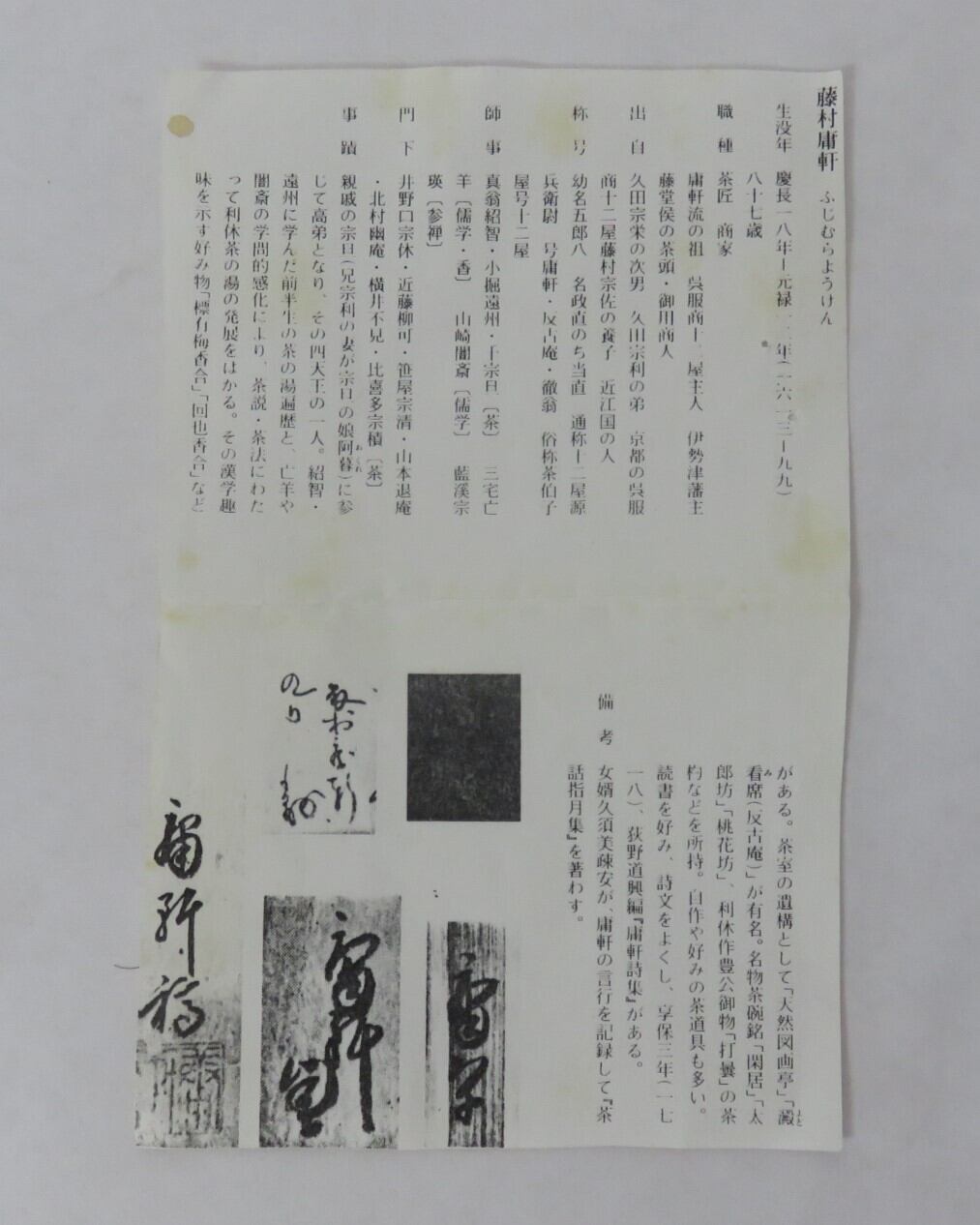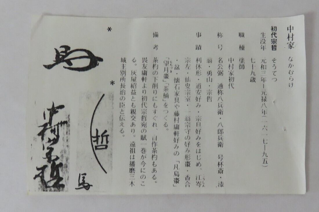 藤村庸軒好 竹中次 有沢弌恒箱書 初代 中村宗哲(作)