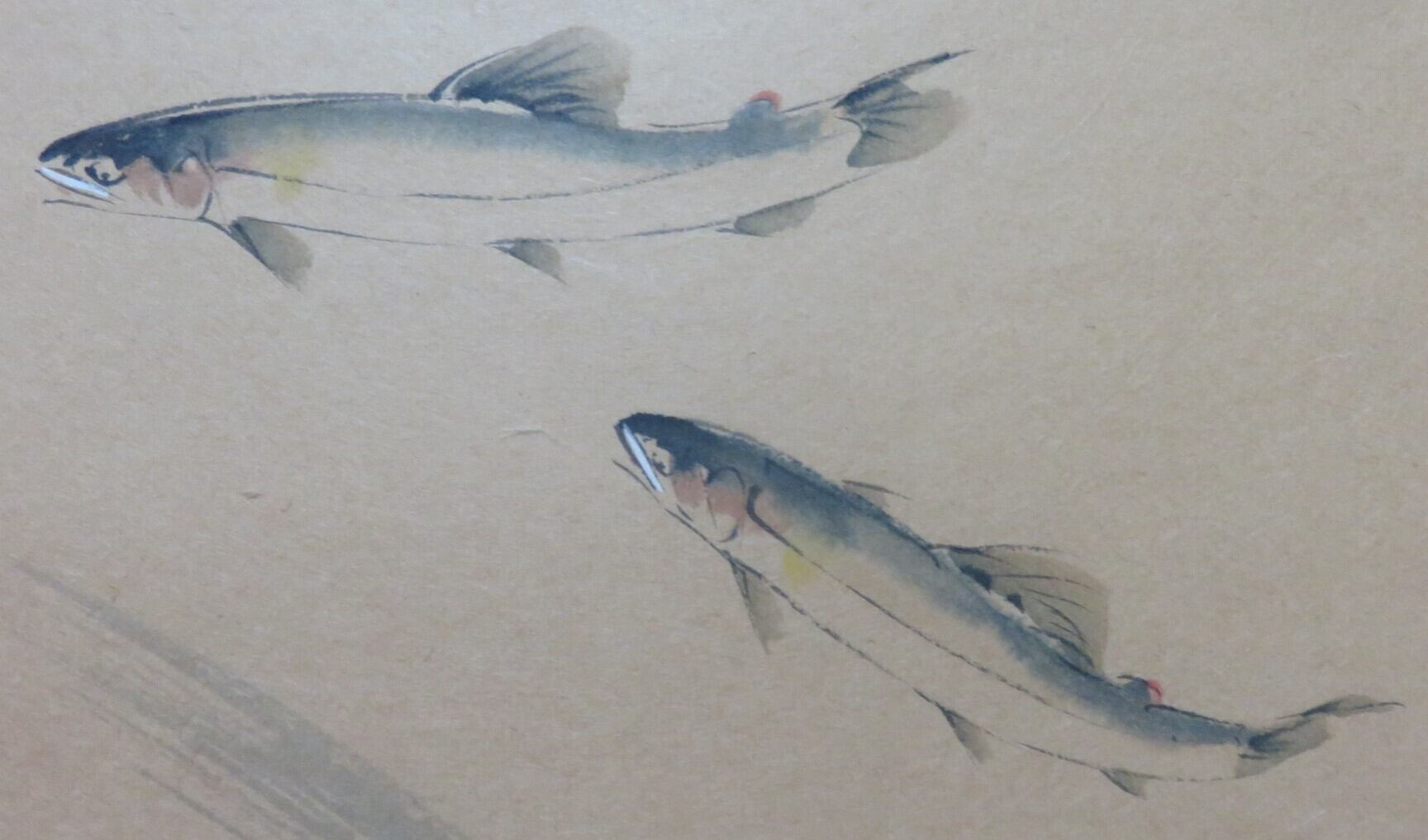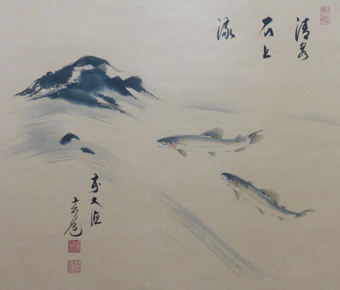 <古物・中古>須賀玄道書付 清流鮎 画賛横軸