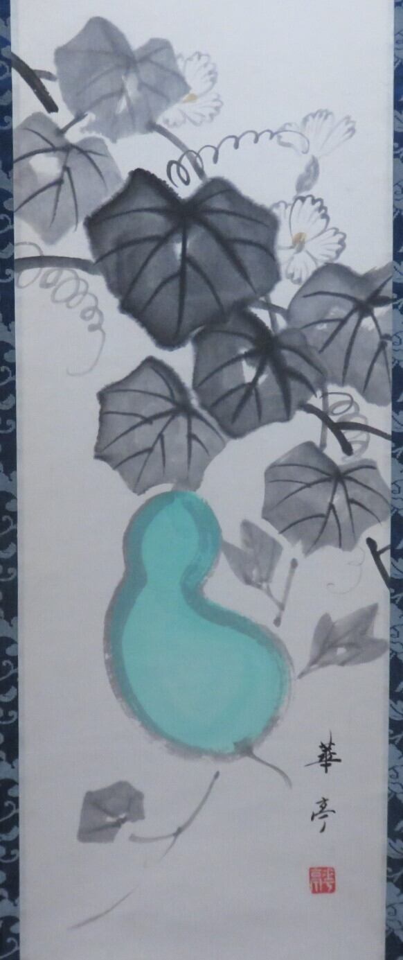 <古物・中古>関口華亭自筆 画賛軸「月凉し・・・」 ※箱ナシ